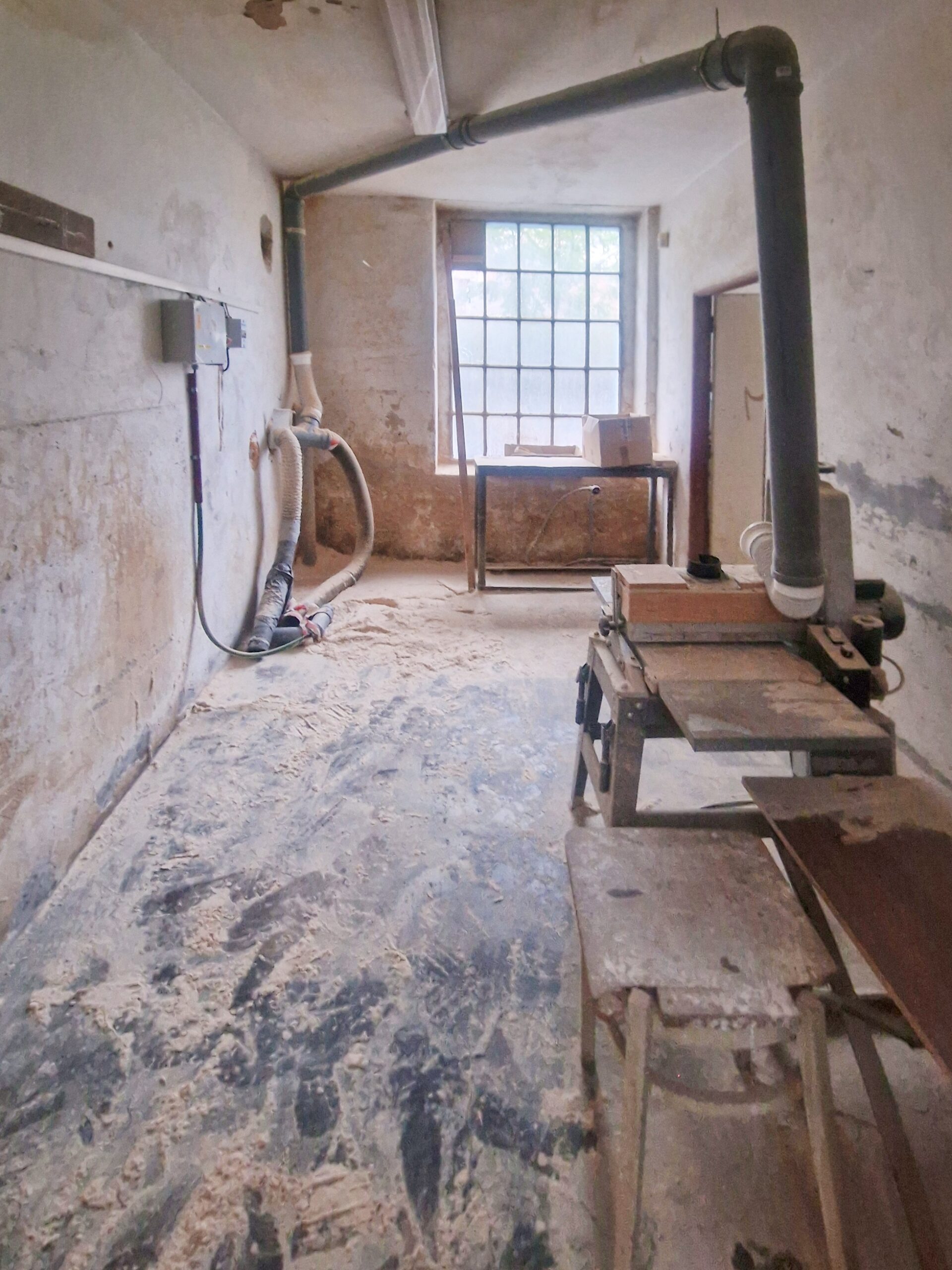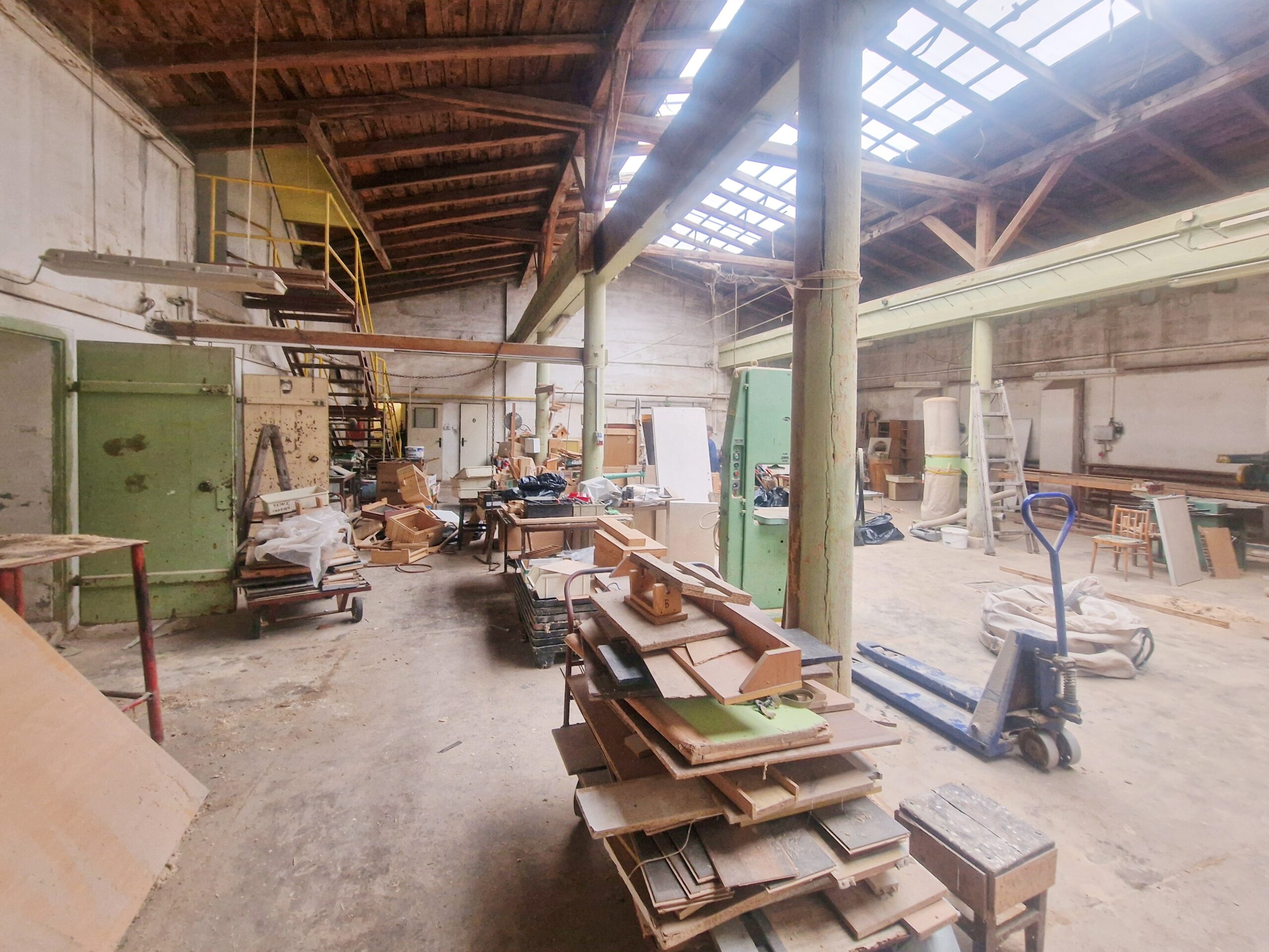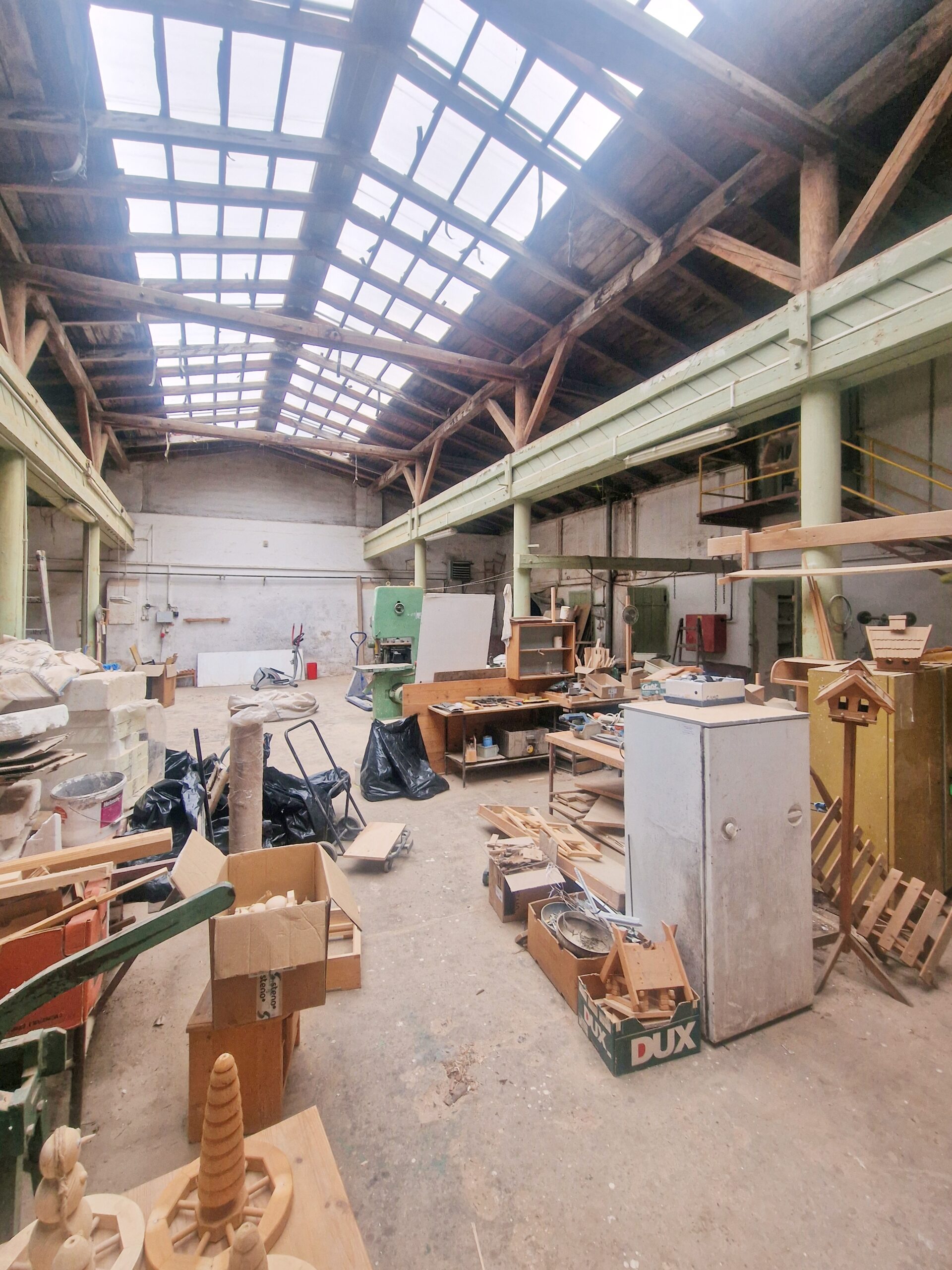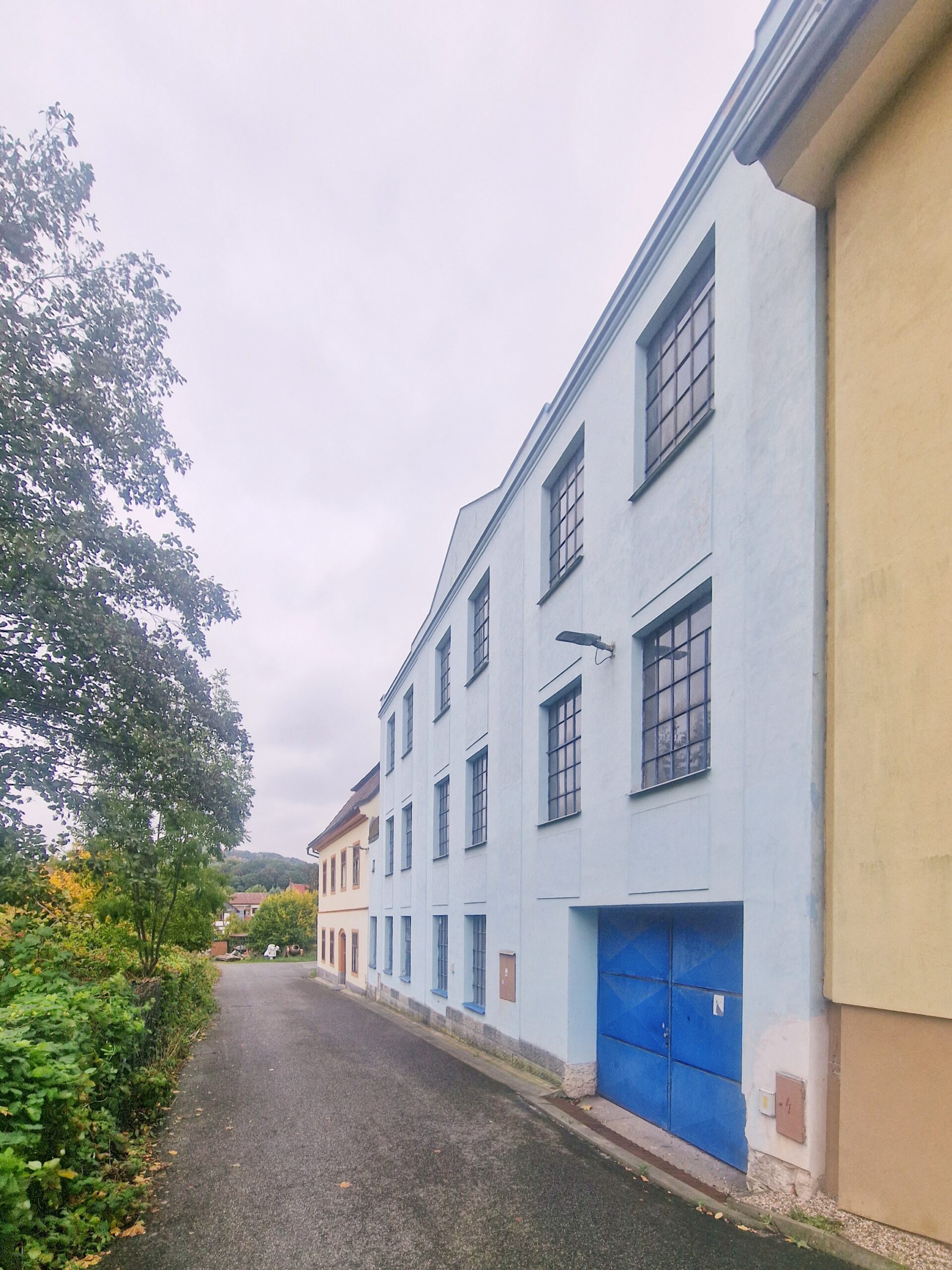 Druhá budova o ploše cca 350 m² nabízí halu s vysokým stropem (bývalá truhlářská a klempířská dílna) a další přilehlé výrobní a skladové prostory se samostatným vstupem z ulice. Vhodné pro lehkou výrobu, skladování, ateliéry, showroom nebo jiné podnikání.