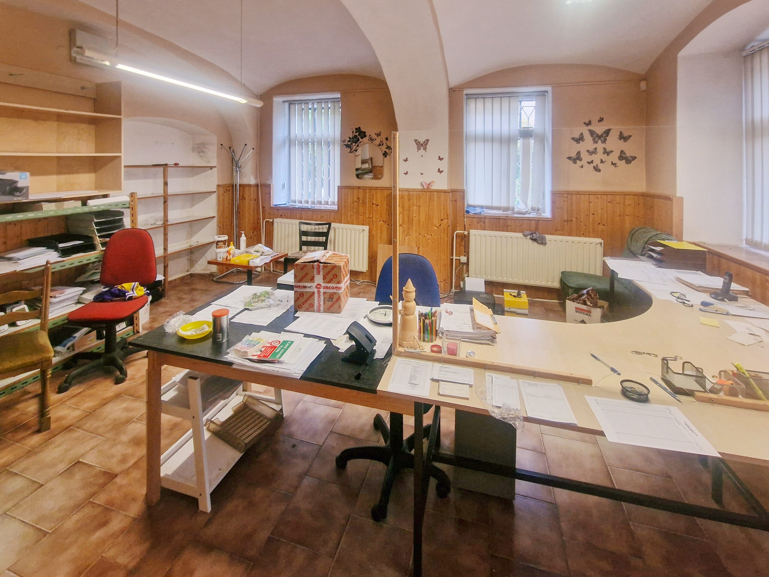 V přízemí se nacházejí stylové nebytové prostory s klenutými stropy – dvě kanceláře, sklad či garáž, sociální zázemí, technické místnosti,