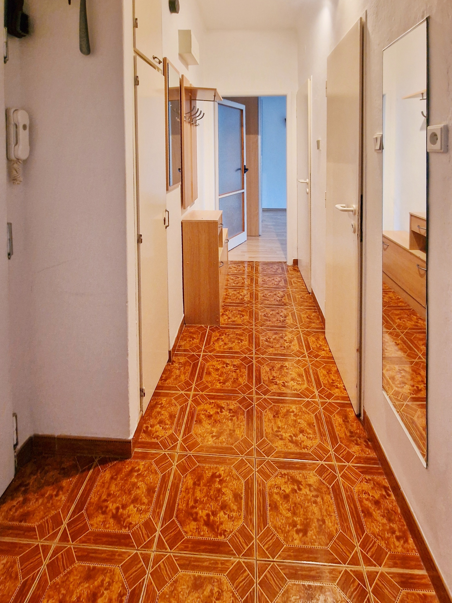 Byt nabízí komfortní a útulné bydlení s plastovými okny, kuchyňskou linkou a moderními podlahovými krytinami – kombinace dlažby a plovoucí podlahy. Koupelna je zděná.
